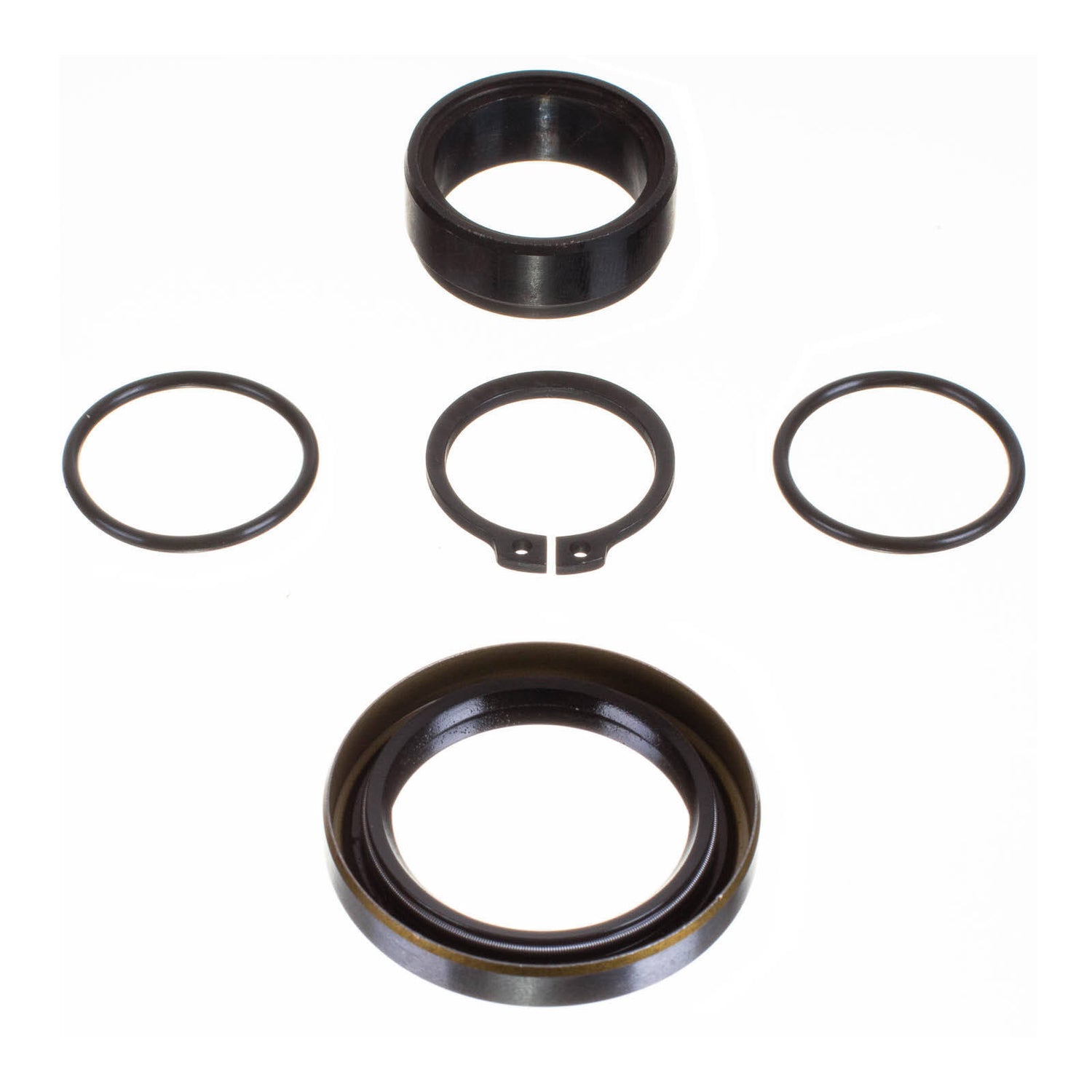 Kit includes case-hardened bushing, replacement outer seal along with any O-rings, snap rings or lock washers required to complete the repair.