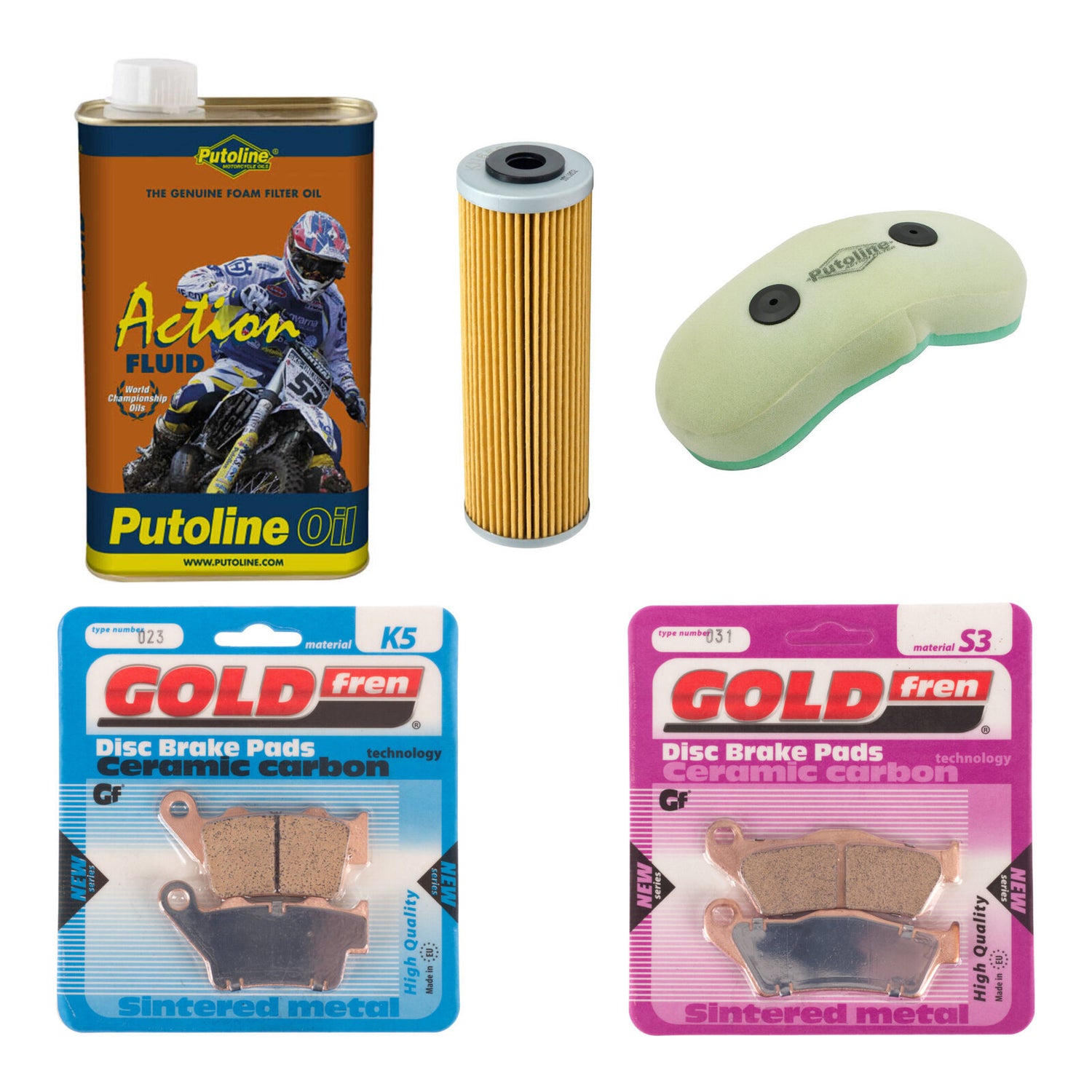 The most convenient one-stop-shop for maintaining your motorcycle. Kits include front brake pads/shoes, rear brake pads/shoes, an air filter with 1L of filter oil and an oil filter where applicable.