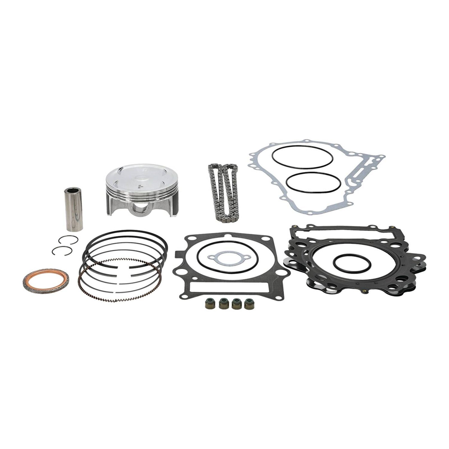- Included are the piston, rings, wrist pin, circlips, top end gaskets, and even wrist pin bearing (for two-stroke applications).